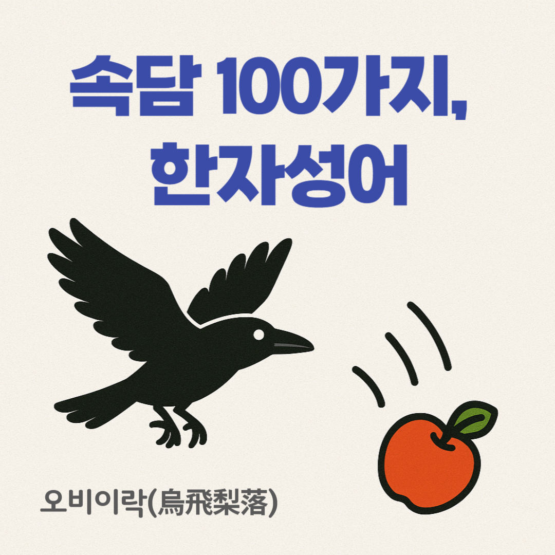 71. 오비이락(烏飛梨落): 까마귀 날자 배 떨어진다는 뜻으로, 아무 관련 없는 일이 공교롭게도 때를 같이하여 의심을 받게 됨.