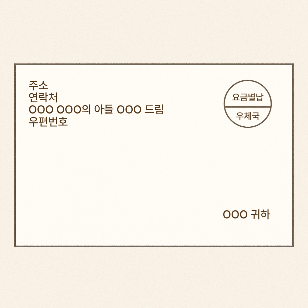 전달용 봉투에 다음과 같은 문구를 손글씨로 적어보세요.